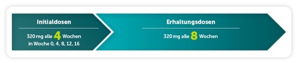 Bei PSO bietet Bimekizumab ein patientenfreundliches Dosierungsintervall mit Injektionen alle 4 Wochen bis Woche 16 und anschließender Erhaltungstherapie mit Injektionen im Abstand von 8 Wochen (siehe Abb. 4).