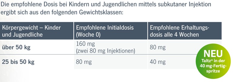 Abb. 1: Dosierung von Taltz® für Kinder und Jugendliche mit JIA.1